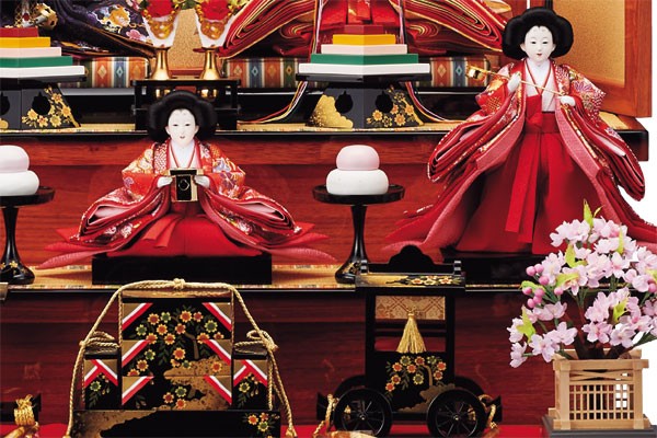 親御様、お子様、縁者様の健康と発展を願いながら職人が丁寧に仕上げた雛人形飾り/雛人形が初節句のお祝いにはなを添えます。