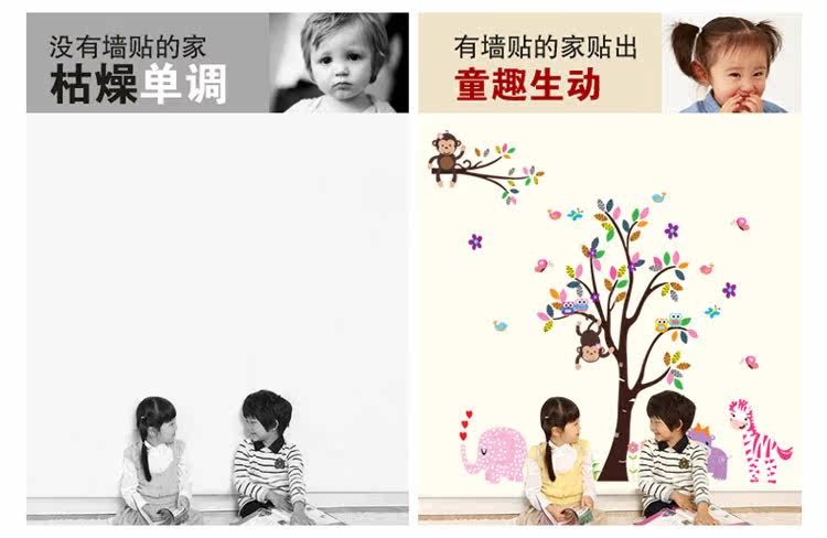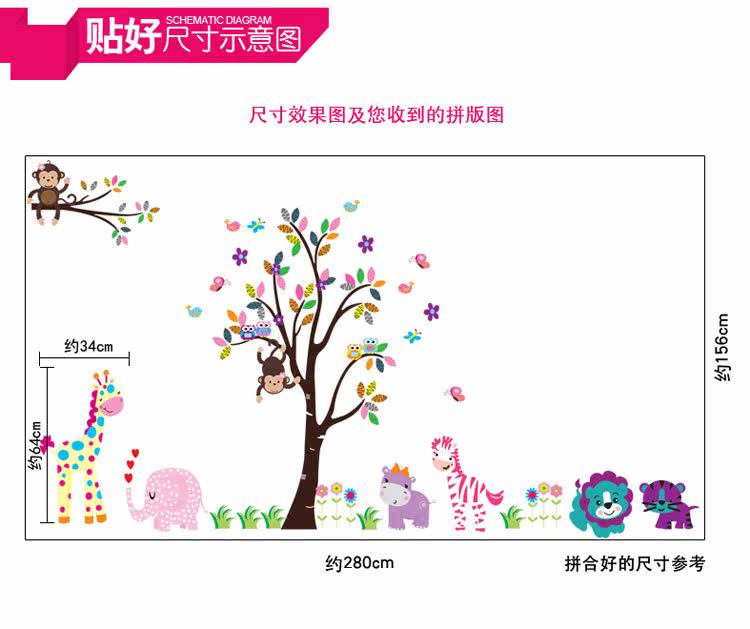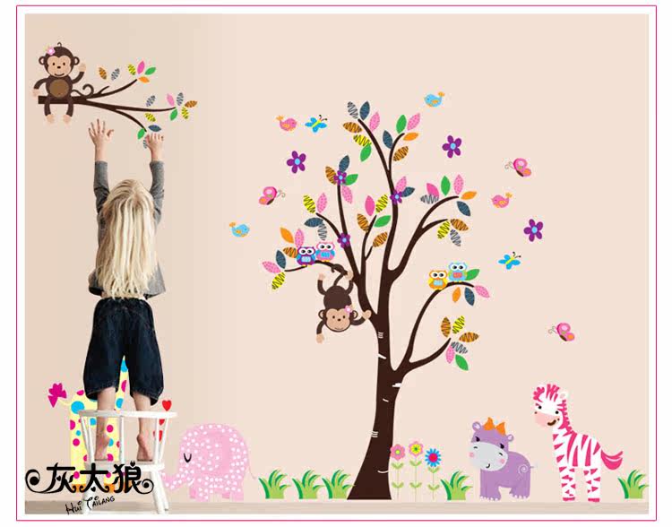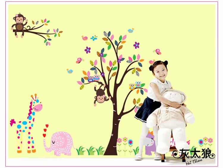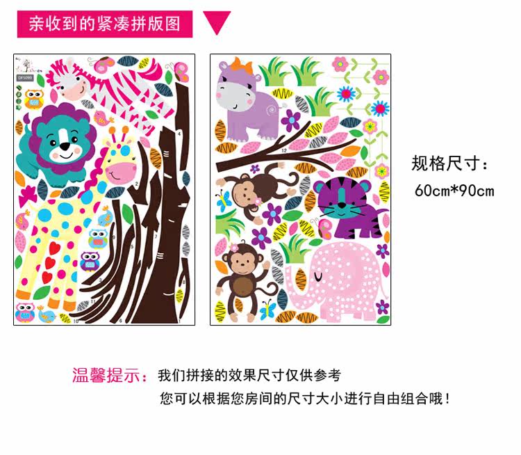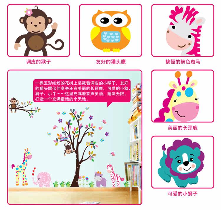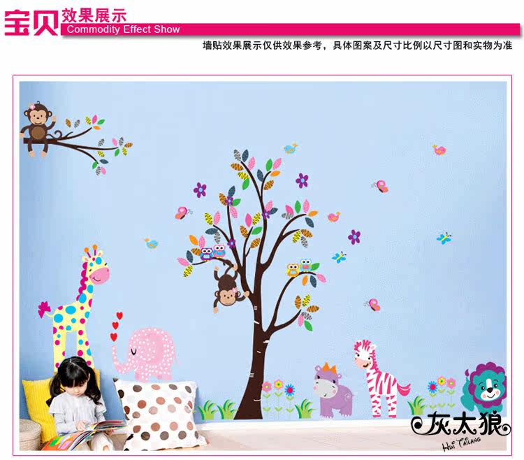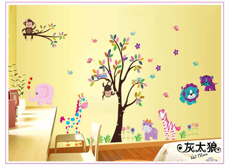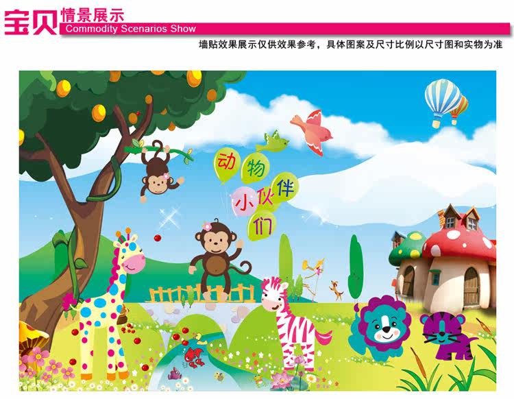 墙贴 动物乐园 儿童 卧室 幼儿园背景墙贴画三代可移除墙贴纸