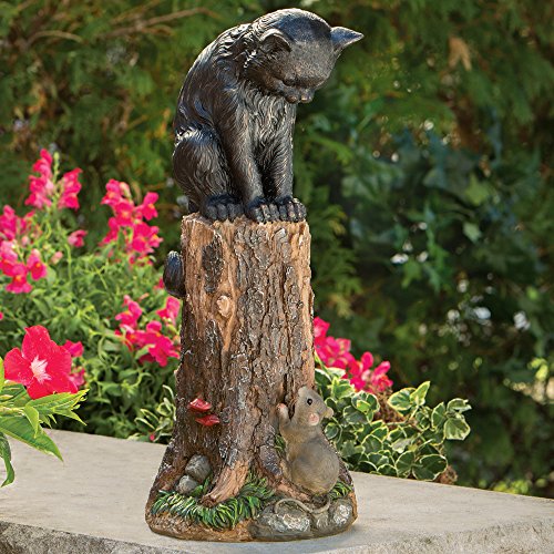 Bits and Pieces - Cat & Mouse Garden Statue- Outdoor Kitten on a Stump Sculpture - 17" Polyresin Home Décor Weather Resistant Lawn Ornament
