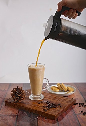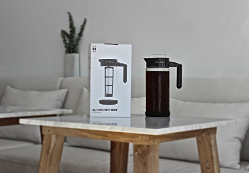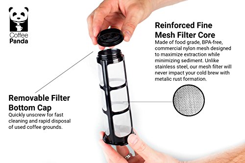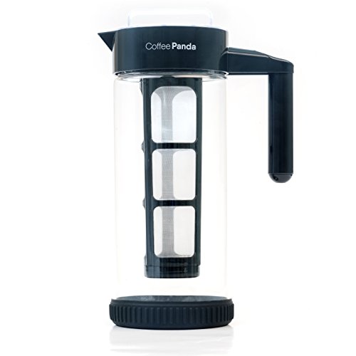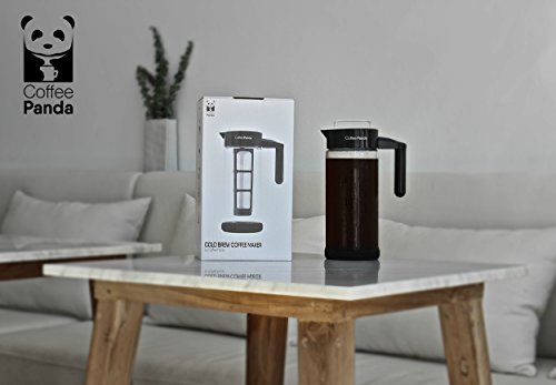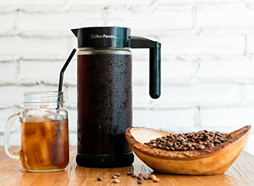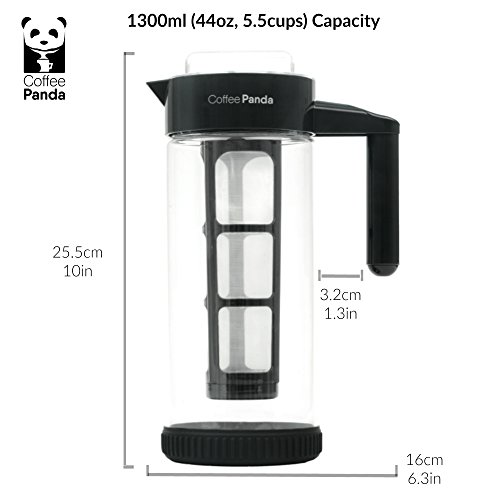 THE SECRET TO PRODUCING LESS ACIDIC, MORE FLAVORFUL COFFEE WITHOUT SPLURGING ON FANCY BREWING EQUIPMENT Your new go-to coffee maker will never leave your refrigerator. - The Coffee Panda Cold Brew Coffee Maker is made of BPA free borosilicate glass and has an extra-large 1300ml (44oz) capacity that yields just over four cups of cold brew concentrate. - Fits in the side compartment of most refrigerator doors, keeping your cold brew coffee fresh for weeks. - Equipped with removable, BPA free, no-slip silicon base designed to eliminate slipping on smooth surfaces and eliminate spilling. Stop waiting in long lines and spending money purchasing cold brew from your local cafe. Coffee Panda's Cold Brew Coffee Maker is perfect for the busy bee. Load a batch and 12 - 24 hours later you have enough coffee to last you for days. Hosting guests? Dilute your cold brew concentrate with water, milk or alcohol to create coffee recipes guaranteed to impress. Dishwasher safe and easy to clean. - To clean, simply dispose of the used coffee grinds after each use and rinse with soap and warm water. It's that easy. The removable mesh filter core also extracts maximum flavor while minimizing coffee grounds escaping into the brew. - Easy grip handle and spout feels comfortable in your hand and makes pouring smooth with no mess. - Comes with a FREE RECIPE E-BOOK written by a professional chef containing five gourmet recipes guaranteed to impress. We take our products (and coffee) seriously at Coffee Panda. In the rare circumstance that you feel unsatisfied with your Cold Brew Coffee Maker any time within the first 90 days of purchase, feel free to return it for a full refund. You won't hurt our feelings...we promise. Interested in brewing less acidic, smoother coffee? Just click the Buy button at the top of this page. 0 |