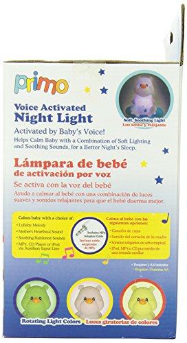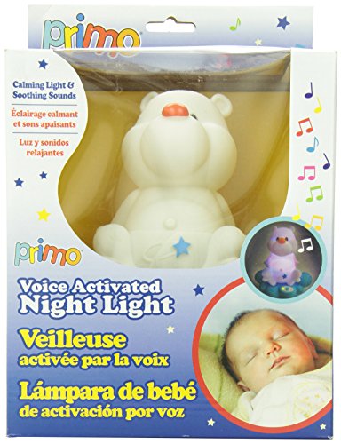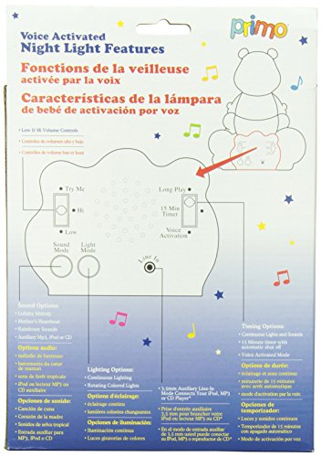 Voice activated night light with 3 timing options, 2 lighting options, and 4 sound options along with volume control - Friendly bear design and soothing sounds help to keep your child comfortable and soothe them to sleep