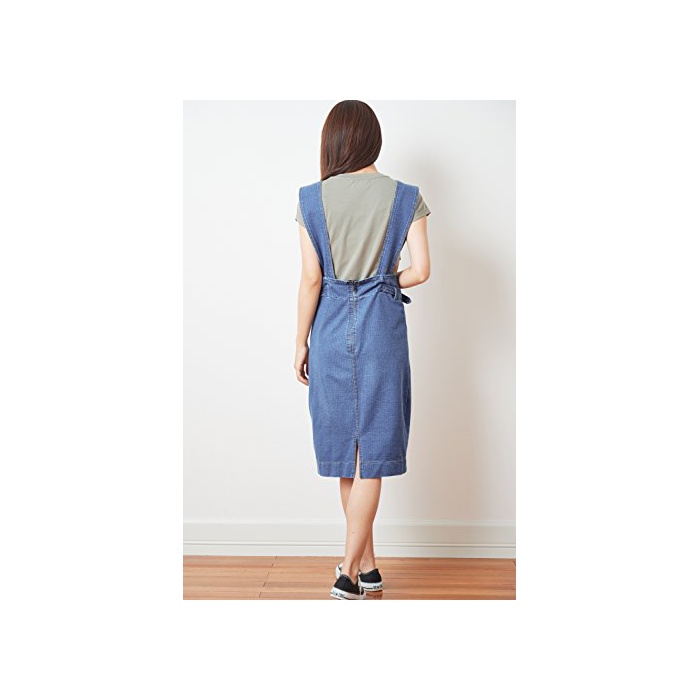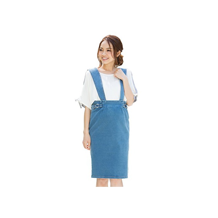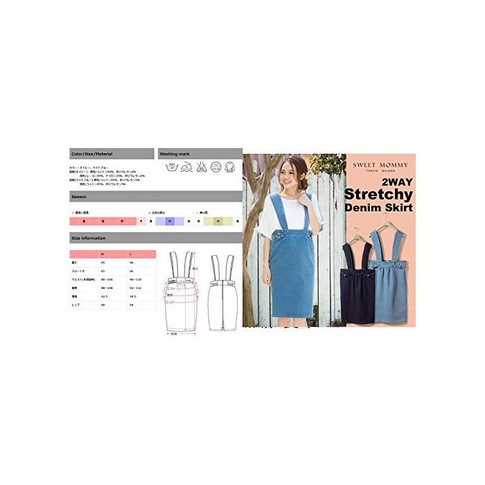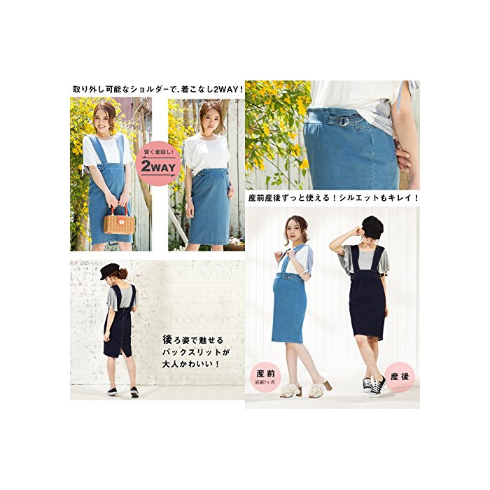원본상품명: Sweet Mommy ニットデニム ハイウエスト ジャンパ?スカ?ト タイトロング バックスリット 2WAY ウエスト調節 肩ひも調節 マタニティ 産前産後兼用