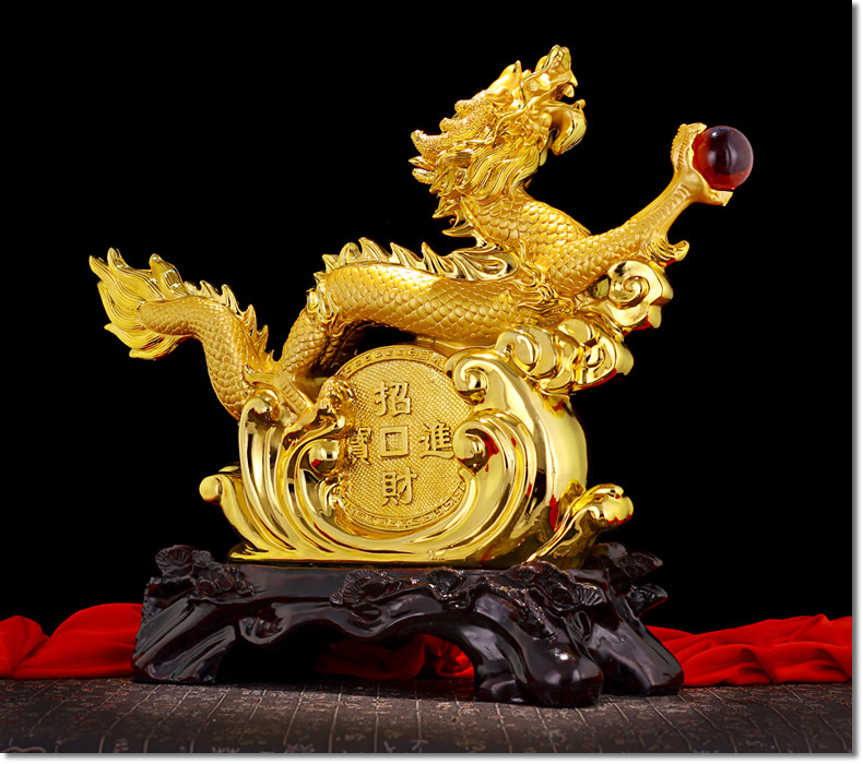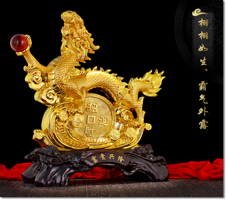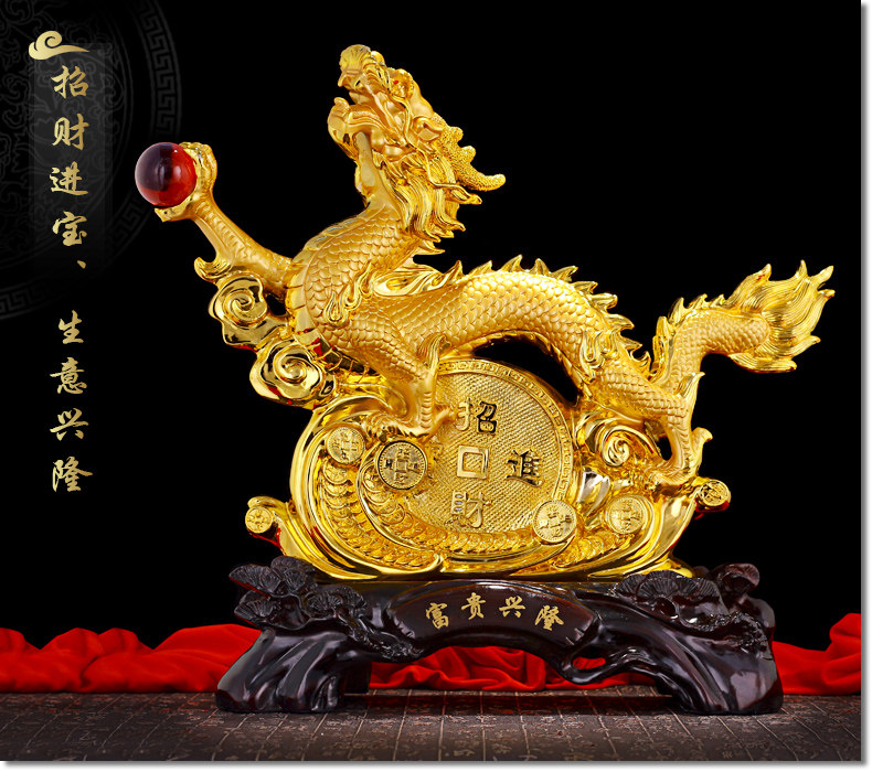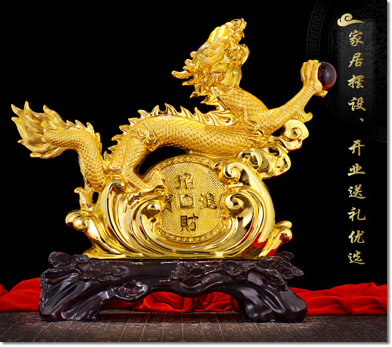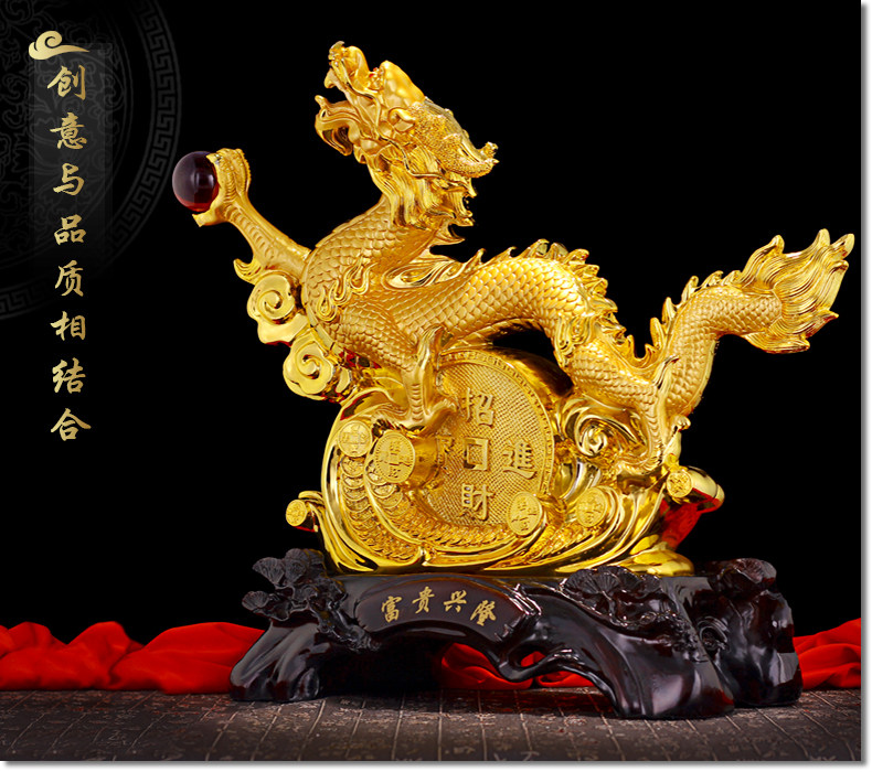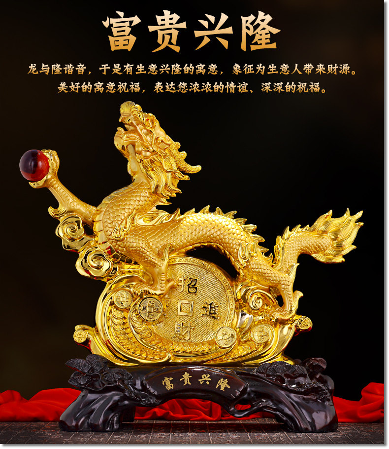 龙摆件 招财生肖龙金龙大号工艺品客厅电视柜装饰品乔迁新居礼品