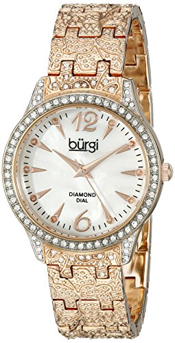 Burgi Women's BUR127RG Diamond & Crystal Accented Mother-of-Pearl Dial Embossed Rose Gold Bracelet Watch