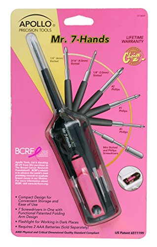 Apollo Precision Tools DT1803 Pink Mr. 7 Hands Multi-Screwdriver, Pink, Donation Made to Breast Cancer Research