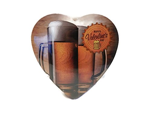 -. Feature : Assorted Chocolates in 6.8 ounce Heart Shaped Package / Features pictures of two beer steins on the front of the heart for the beer lover / Happy Valentines Day is written on front package
