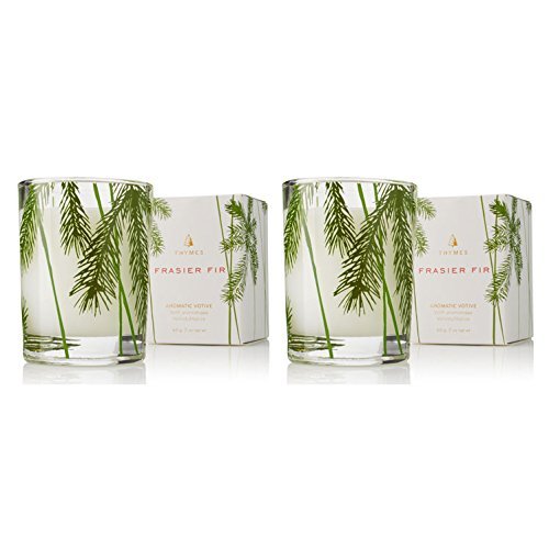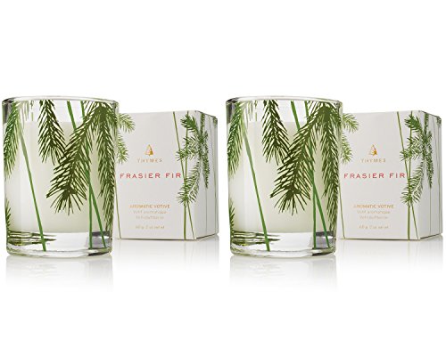 Thymes Frasier Fir Votive Candle in Pine Needle Glass - Set of 2
