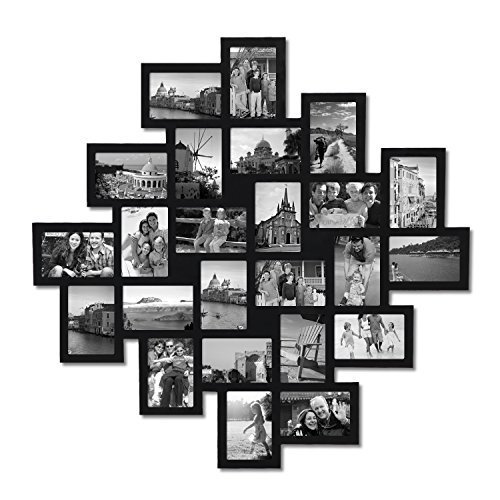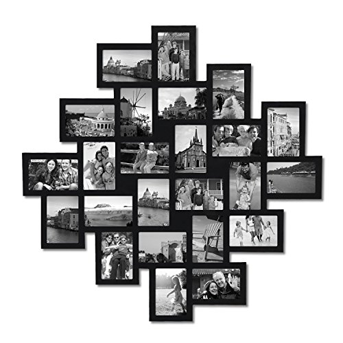 Adeco 24-Opening Black Wood Wall Hanging Collage Clustered Photo Frame, 4 by 6"