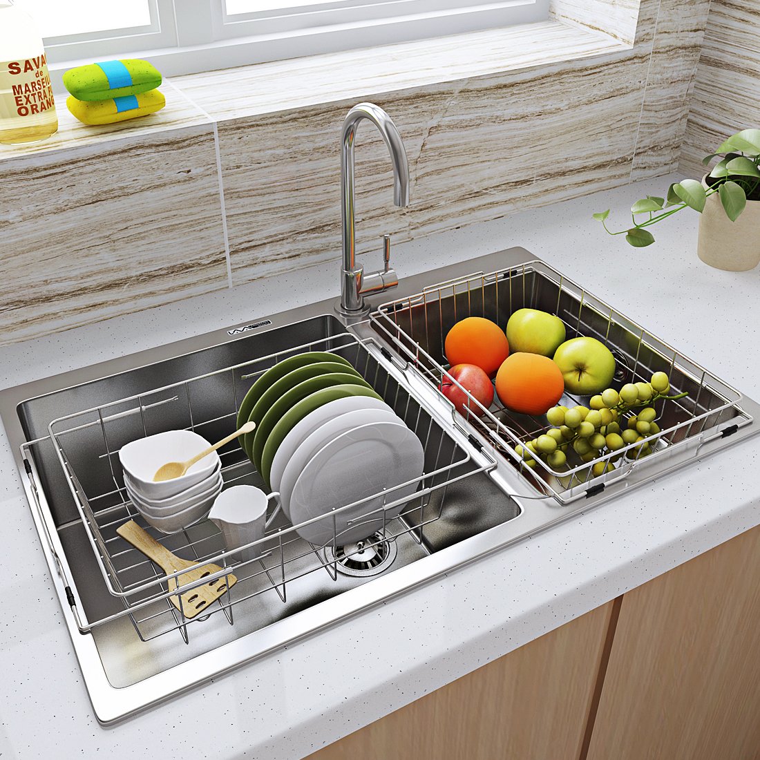 Free size with stopper that can be used at the edge of the sink.