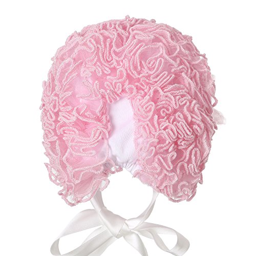 Binding : Apparel Product Description A bonnet is any of a wide variety of headgear for both sexes-most often female-from the Middle Ages to the present.As worn by women and girls,bonnets were hats worn outdoors which were secured by tying under the chin, and often which had some kind of peak or visor,took the place of protection from sun,prevent wind-chapping,hold the hair in place, protect styled hair or keep it tidy,the term has long been popular in both civilian life and in the Royal Regiment . Baby Bonnets are a time old tradition that carries into present day because of their elegance and functionality. They're offered in small to large sizes then tie at the chin with two silk ribbons for a more secure and comfortable fit. Carry the tradition in your family with a bonnet from Hanakimi you can't find anywhere else. For parties and photos, choose from baby girl bonnets for the perfect accessory to accent wisps and curls. Lace, netting, beads and bows add just the right touch to these handmade bonnets. XXS/Newborn Fit for 0-3 Months, XS/3M Fit for 3-6 Months, S/6M Fit for 6-12 Months, M/12M Fit for 12-24 Months, L/24M Fit for 24-36 Months, XL/36M Fit for 36-48 Months. 0