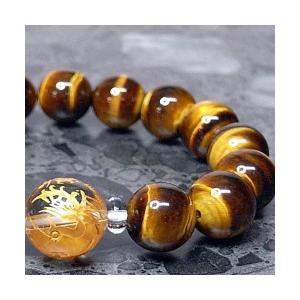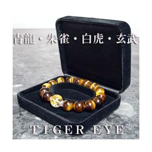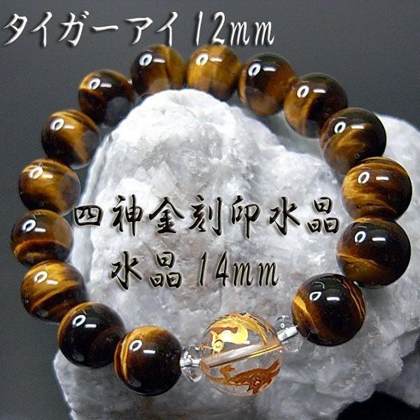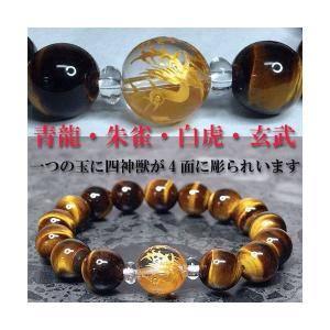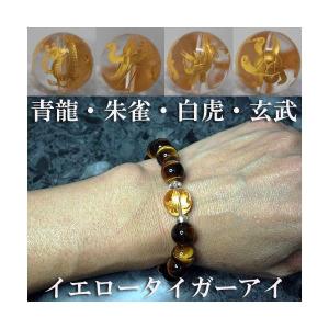 パワーストーン ブレスレット メンズイエロータイガーアイと水晶(四神獣彫り)の男性用ブレスレットです。全体的な運気を上げ、成功へと導いてくれるといわれます。(家庭 円満・家内安全・金運・財運仕事運・勝利運・学業運・健康運・癒し・厄除け・周囲の邪気を払う)*一般的な言い伝えであり、効果などを保障するものではございません。手彫り四神獣(金色彫り)は14mm玉を使用していますので、存在感が格別です。一粒の水晶に四神4体が彫られています。開運・金運UPの代表、タイガーアイとの組み合わせはとても美しく豪華に仕上がりました。ご注文後に店内で1点1点丁寧に作成させていただきます。■素材・サイズ天然石:14mm玉天然水晶(四神彫)、12mm玉イエロータイガーアイ他:伸縮性シリコンゴム4重通し内径:約17~17.5cm男性用パッケージ:ケース入り(プレゼント包装無料です) 送料込み 送料込 手作り