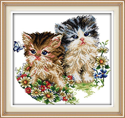 YEESAM ART® New Cross Stitch Kits Advanced Patterns for Beginners Kids Adults - Cat Lovers 11 CT Stamped 42x40 cm - DIY Needlework Wedding Christmas Gifts
