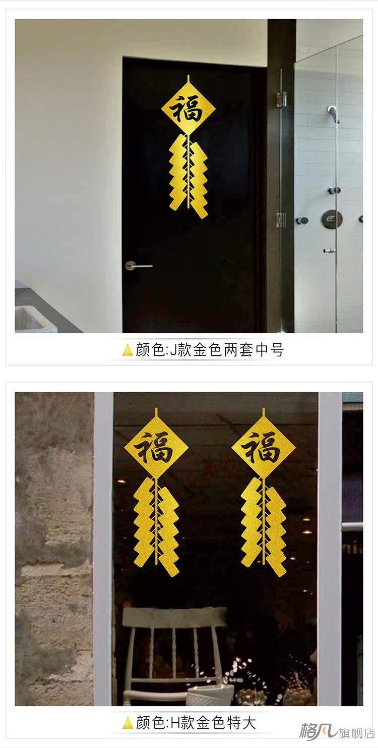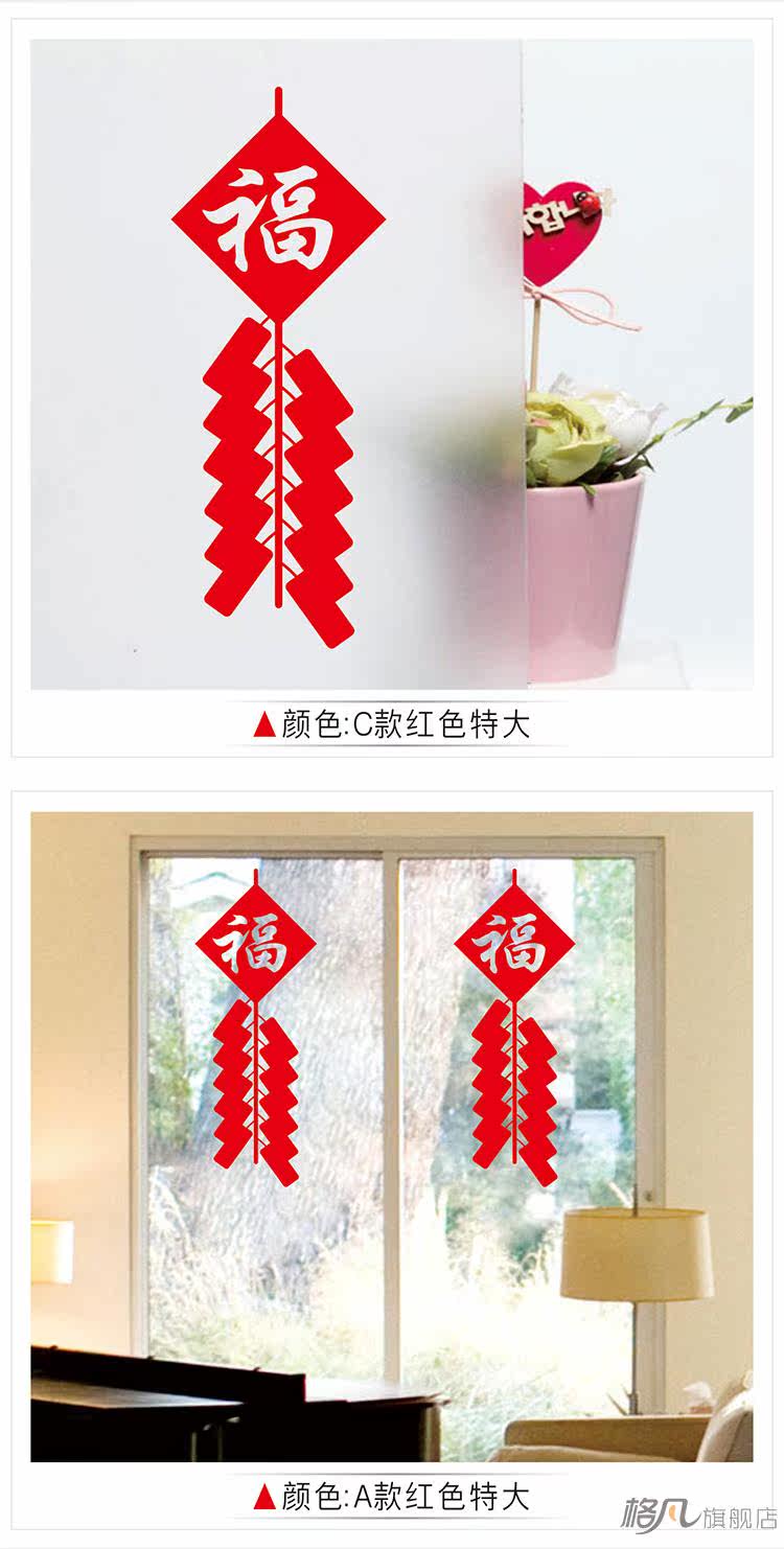 春节新年装饰品喜庆过年福字鞭炮中国结墙贴橱窗玻璃贴纸