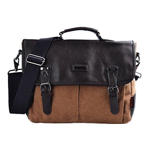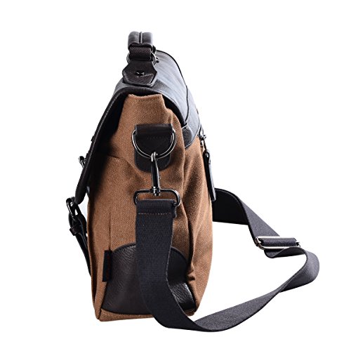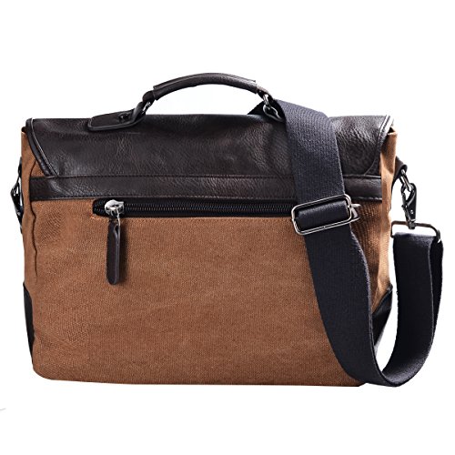 -. Brand : DGY -. Department : mens -. Feature : Material: high quality canvas and leather. / Dimension: L x W x H 14.1 x 4.7 x 11.4 Inch, weight: 2.08 lb. / Structure: side bottom leather trims to make it stronger, flap over with 2 magnetic buckles to make dual safety. A hand strap and a adjustable shoulder strap/ crossbody strap. / Exterior: 1main zipped closure compartment,2 front pockets under the flap and 1 back wall zipped pocket; Inner: 2 slip pockets and 1 wall zipped pocket; / It has clean, smooth and even stitching for added reliability and sturdiness.You can use it as your laptop bag, briefcase ,shoulder bag, crossbody bag, or messenger bag. -. ProductGroup : Apparel -. ProductTypeName : LAGE -. Size : checked-medium -. Title : DGY Vintage Canvas Leather Messenger Bag Laptop Shoulder Bag Briefcase Bag for Men