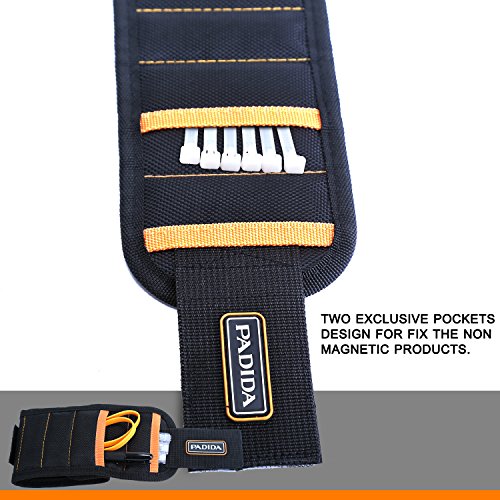 - 【♛ SUPER STRONG MAGNETS AND TWO SMALL POCKETS:】 Upgraded magnet wristband is Embedded with 3x5 large powerful magnets that almost surround the entire wrist. Two small pockets on the magnetic wristband to fix the non magnetic products, greatly holding all the small metal objects