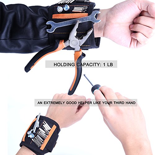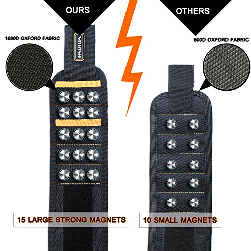 Magnetic Wristband with 15 Strong Magnets for Holding Screws, Nails, Drilling Bits, Best Unique Tool Gifts for DIY Handyman, Men, Women