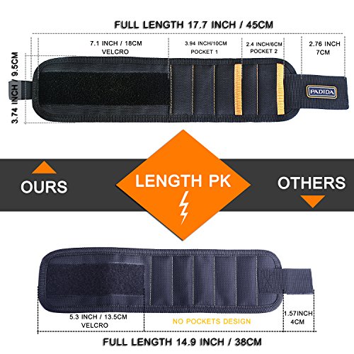 - 【♛ EXTRA LENGTH DESIGN:】 The longer design of magnetic wristband for that you can wrap it onto arm rather than on wrist when necessary. Fully improving your work efficiency.