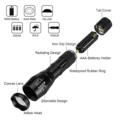 Super Bright: 1000 lumen tactical flashlight, T6 LED light apply for more bright on night.It must be cool when you have a LED flashlight that can cast a beam to the top of a 200' tall redwood.