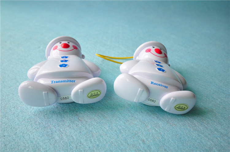 1. 本产品主要用于婴儿睡眠监护,为一种声音感应触发,提醒的新产品。产品有声音感应发射器(Transmitter)和接收发音器(Receiver)两部份。如果醒来的婴儿发出哭声,婴儿附近的声音感应发射器(Transmitter)就会发出信号,接收器(Receiver)收到信号就会发出产品默认的婴儿哭声,提醒监护人此时婴儿可能醒来或其他情况。两个部份是用无线传输,避免了拉线的不便,是婴儿监护人的好帮手。