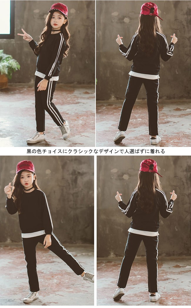 スウェットトレーナー 2点セット 女児 長袖 ロングパンツ スウェット 女の子 スポーツウェア セットアップ カジュアル 春秋物 ジュニア 部屋着女の子用のスウェットトレーナー上下2点セットが登場長袖ロングパンツの仕様で春秋の季節にピッタリ柔らかな素材にカジュアルなカッティングでリラックスな着心地をもたらす黒の色チョイスにクラシックなデザインで人選ばずに着れる部屋着としても外出着やスポーツウェアとしてもとても素敵なワンセットカラー:写真色素材 綿混紡サイズ(cm) 110 120 130 140 150 160110 トップス 着丈41 バスト70 ボトムス 総丈63 ヒップ69120 トップス 着丈44 バスト73 ボトムス 総丈68 ヒップ72130 トップス 着丈47 バスト76 ボトムス 総丈73 ヒップ75140 トップス 着丈50 バスト79 ボトムス 総丈78 ヒップ78150 トップス 着丈53 バスト82 ボトムス 総丈83 ヒップ81160 トップス 着丈56 バスト85 ボトムス 総丈88 ヒップ84ご注意:※サイズは平置きサイズです。素人採寸ですので、若干の誤差がございます、ご了承ください。
