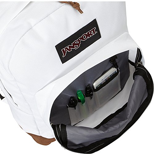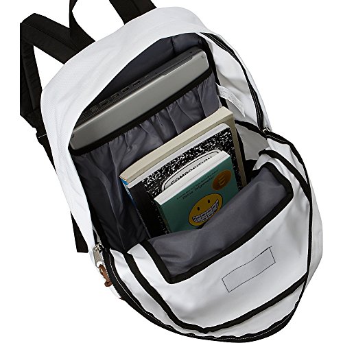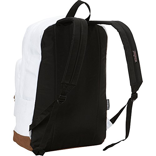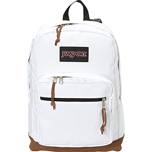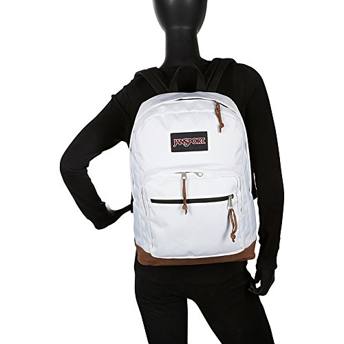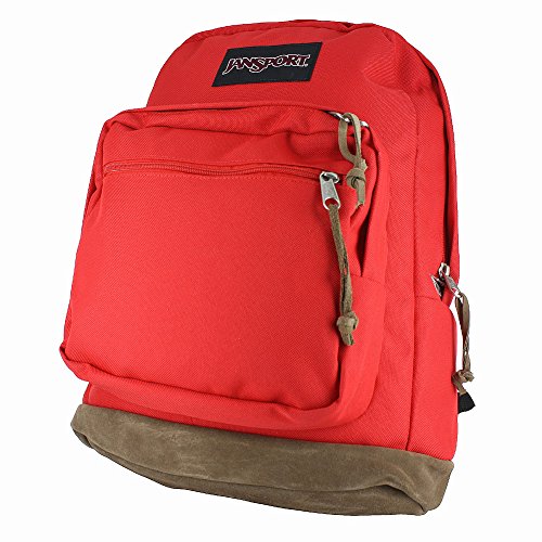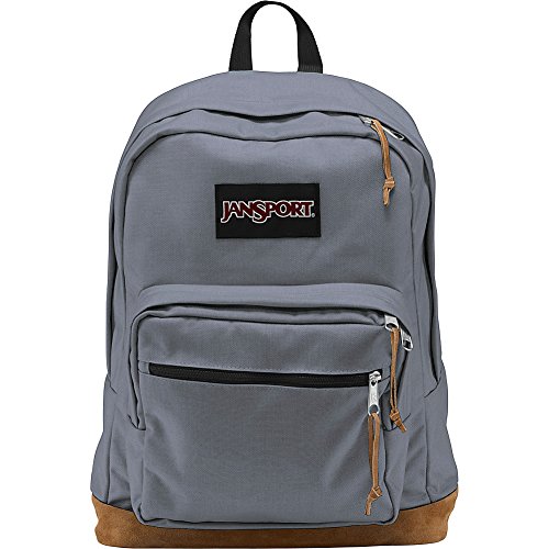 Carry your gadgets anywhere you go in this JanSport Right Pack laptop backpack. It has front zippered pockets and a spacious main compartment to hold your laptop accessories, phone, and keys. You can use the internal laptop sleeve of this 15 inch laptop backpack to protect your device from scuffs. Featuring padded shoulder straps and a haul handle, this travel laptop backpack is comfortable to carry. This bag, with a suede leather bottom, is designed to stand upright when you place it down.Feature