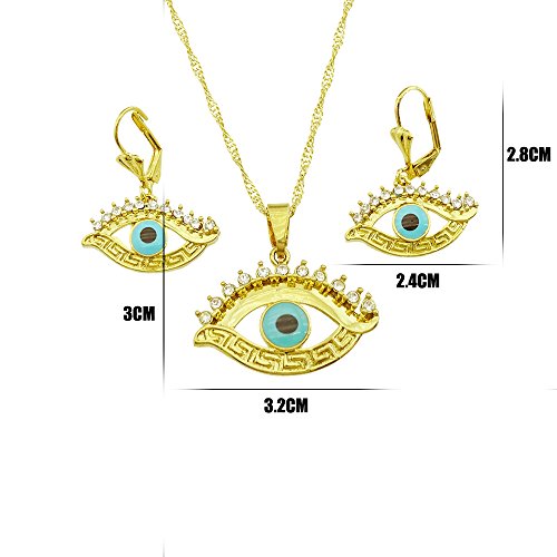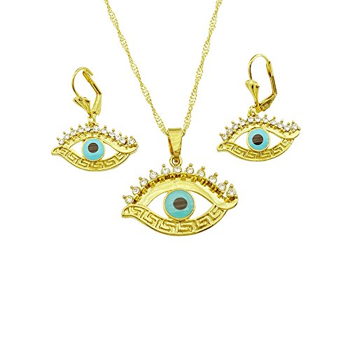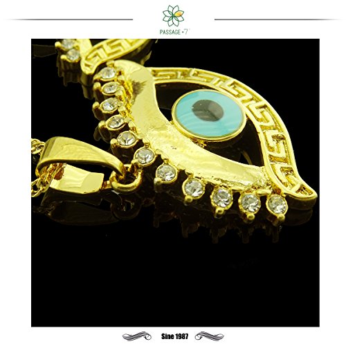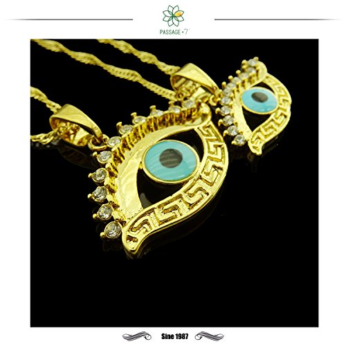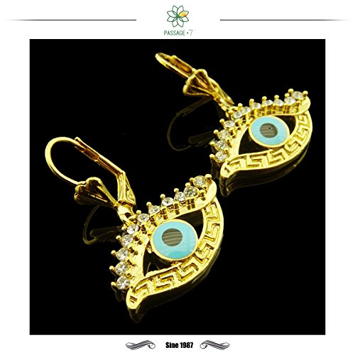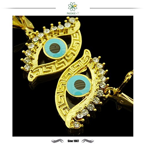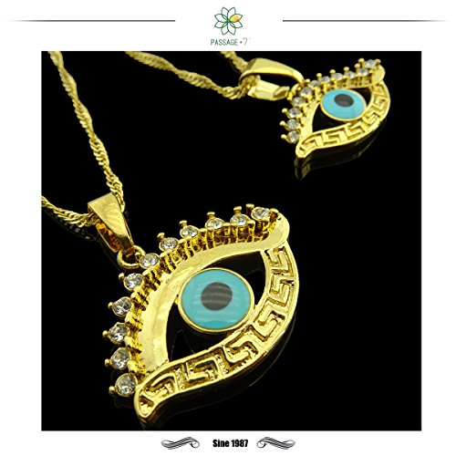 -. Title : Passage 7 18K Real Gold Plated Evil Eye Crystal Pendant Necklace Earrings Jewelry Set