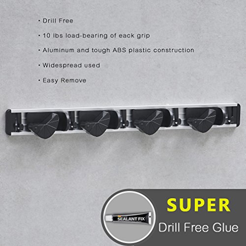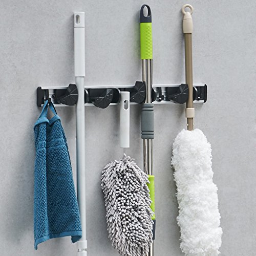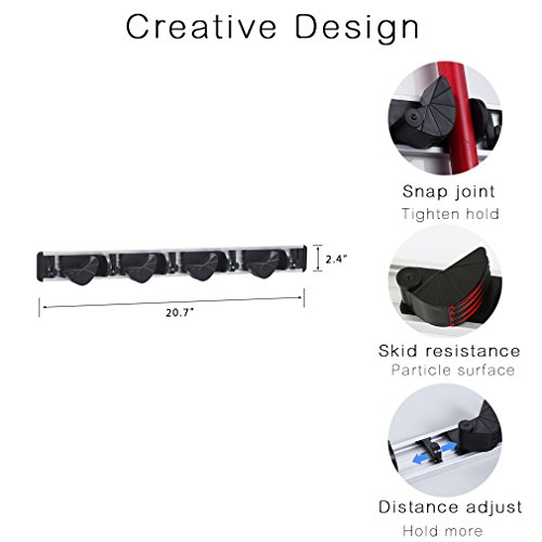 - Sliding around:4 friction-grips with 5 hooks that can be Sliding around if needed,keep your mops,brooms,etc.out of visual site