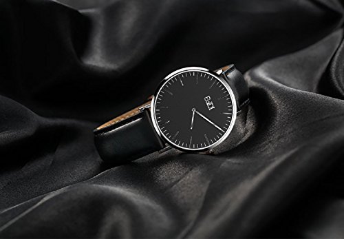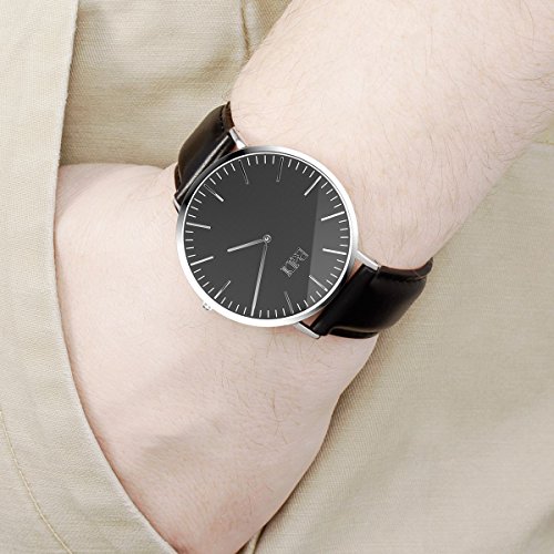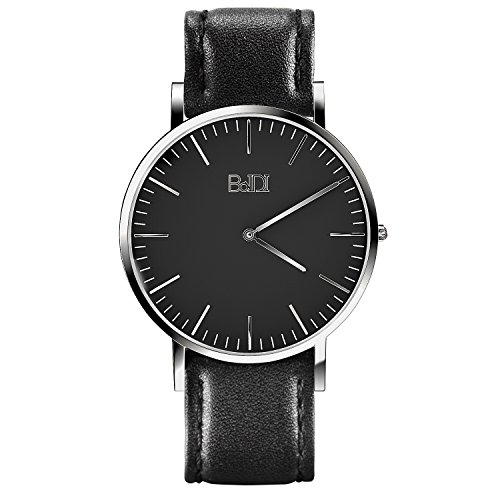 BAIDI 손목시계 맨즈 쿼츠 맨즈 시계 40mm 비지니스 심플 아날로그 표시 가죽 레더 벨트 (블랙)
