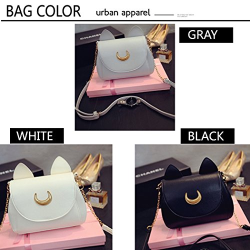 Women Handbag Sailor Moon Luna Cat Cosplay Shoulder Bag PU leather for Ladies (9.6 x 3.9 x 7.0inch, Gray)