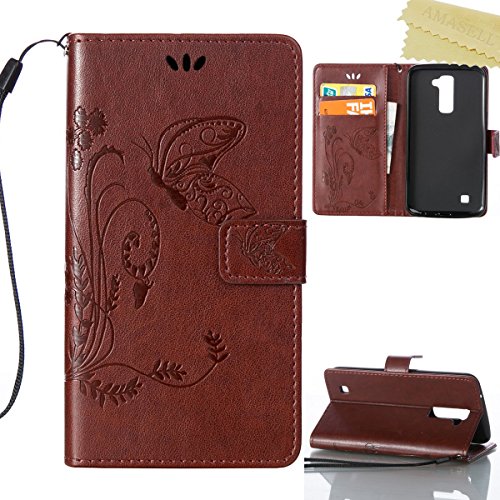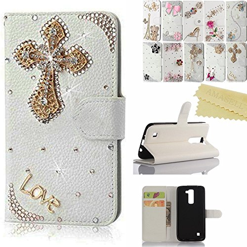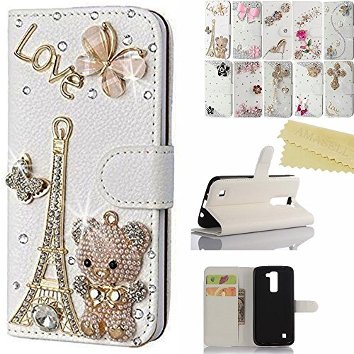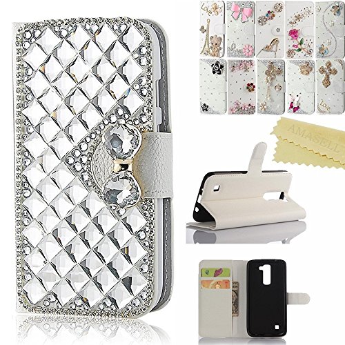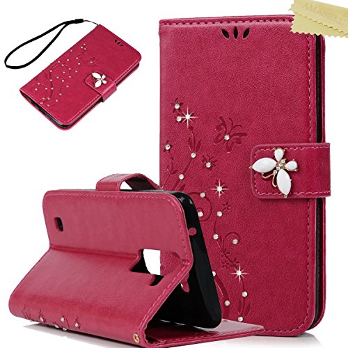 LG K7 case, AMASELL Handmade Bling Crystal Diamond Leather Wallet Stand Case For LG Tribute 5, LG LS675, LG MS330 Case, pink bowknot