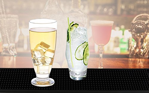 1.It helps to prevent excess spillage and damage to glasses from the bar or from sliding off onto the floor. 2.This mat provides a larger staging area than the traditional long, narrow bar service mats for bars with higher volume. 3.This bar mat fit snuggly into bars, which have grooves cut into them. 4.Provides better drainage and absorbs spills, appropriate for any bar. 5.Receptacle ends not only act as a good drainage device, but they also securely hold glass as well. 6.Practical Easy to Clean.