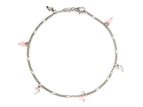 10 Inches 3 Dolphin Ankle Bracelet with Simulated Stones Sterling Silver