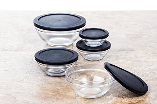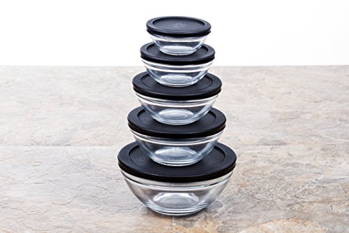 Multi Purpose Glass Bowls Food Storage Containers Set - 10 Pc Glass Kitchen Containers w/ Snap Tight Lids (Black)