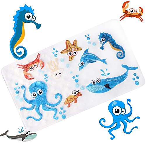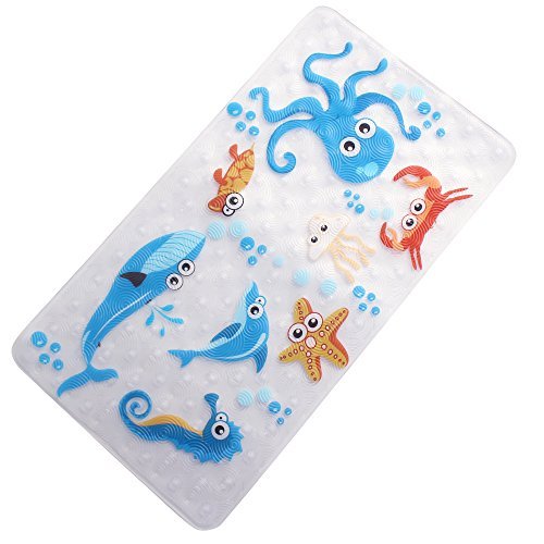 Product Benefits 1.Hundreds of high-strength suction cups stick to the bathtub or floor tightly. 2.Non-slip texture is rough enough to make shower safer for you and your family. 3.Unique cute style design for your kids makes shower more fun.