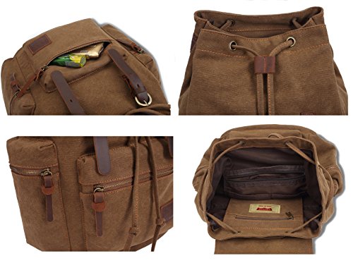 -. Title : KaLeido Vintage Canvas Leather Backpack Rucksack Casual Daypacks