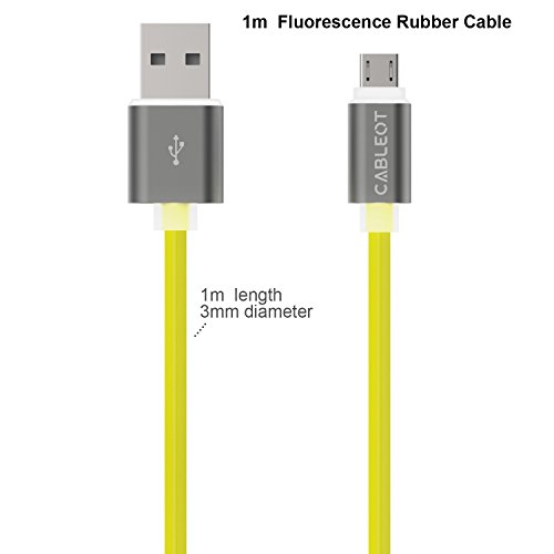 Micro USB Cable (3.3ft) CABLEOT Fluorsecence charging cord - Sync and Charge for Android Devices, Samsung Galaxy, Sony, Motorola and More (Yellow)