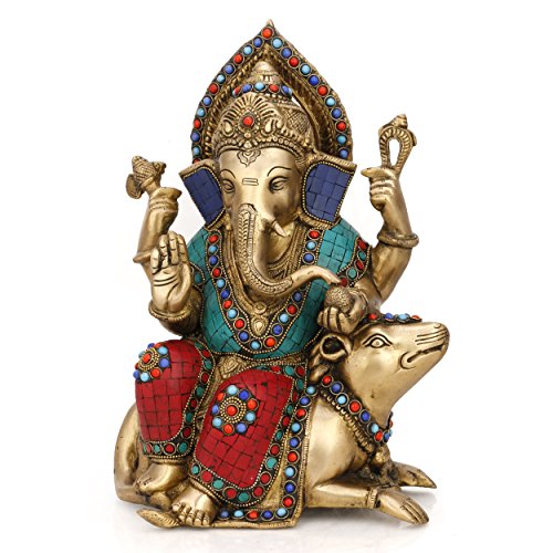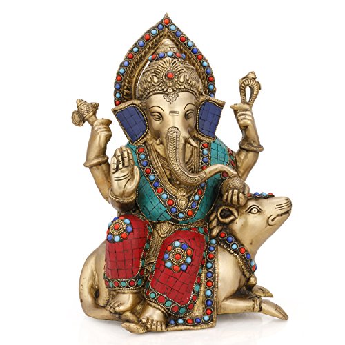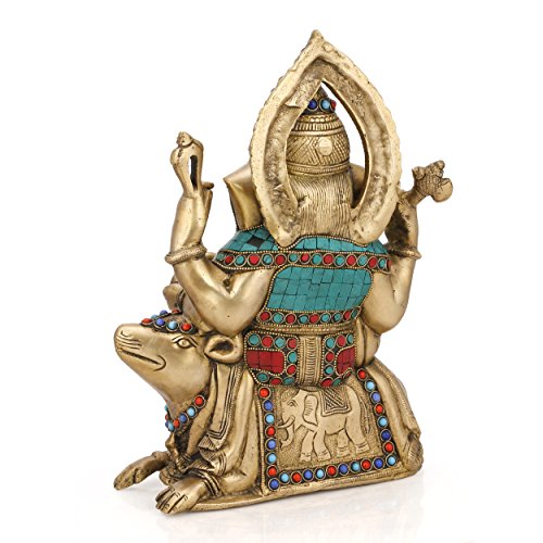 1 Ft Ganesha Ganesh Hindu God Elephant Lord Figurine Turquoise Brass Ganpati Idol Metal -Craftvatika