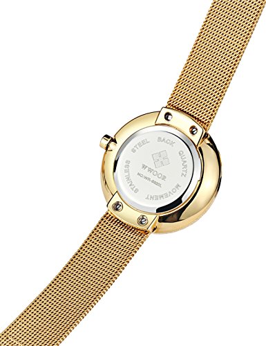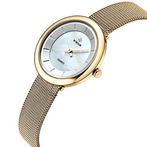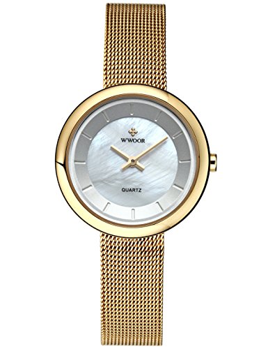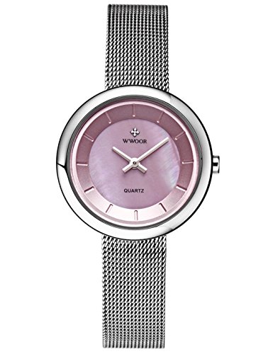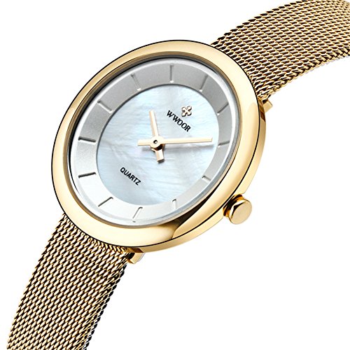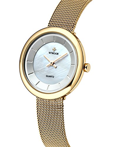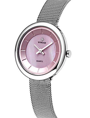 -. Title : WWOOR Quartz Round Wristwatch Stainless Ultra Thin Mesh Band Women's Waterproof Watches