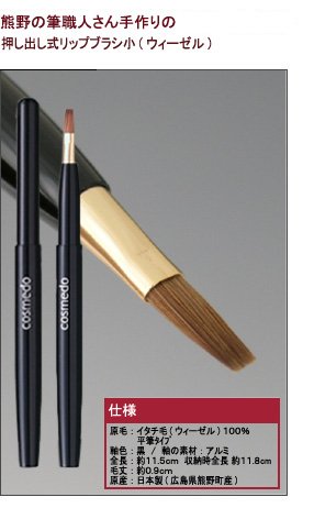 Kumano Kosumedo extrusion lip brush Small (Wiesel 100%) capped Pikes smaller: slim type (push type red brush / Makeup Brush / Makeup Brush)