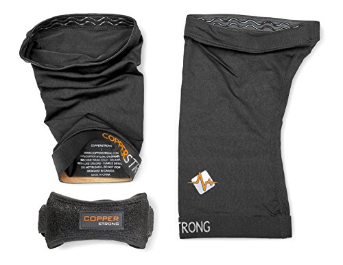 CopperStrong Knee Brace Combo - Knee Sleeve and Patellar Tendon Strap – Bursitis Tendinitis Arthritis Chondromalacia Osteochondritis Plica and Iliotibial Band Syndrome - Men and Women Wear Anywhere