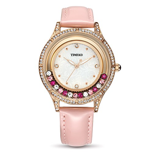 -. Title : Time100 Women Pink Leather Band Diamond-Set Waterproof Analog Quartz Fashion Watch #W80115L.03A