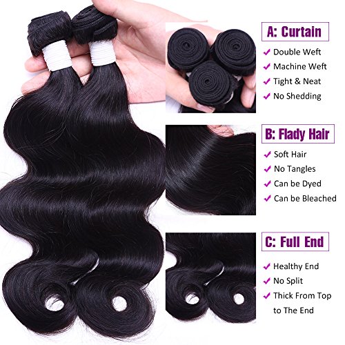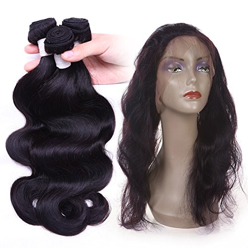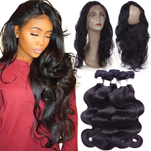 Flady 360 Lace Frontal with Bundles 8a Brazilian Body Wave Virgin Human Hair 3 Bundles with Pre-plucked 360 Lace Band Frontal with Baby Hair (16 18 20...