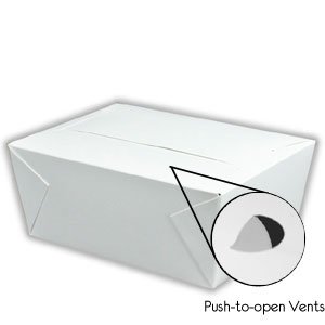 Take Out Containers Easy Fold & Close Twin Lock (Pack of 50) Box #3 WHITE with Poly-coated Inside To-go Containers [56oz - 6.25" x 8.5"x2.5" Base] x 2.5" High] ECO DISPOSABLE 100% RECYCLED Paper