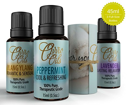 Calm and Peaceful Essential Oils Gift Set by Ovvio | 100% Pure Aromatherapy Oil | Includes Ylang Ylang, Peppermint, and Lavender Oil - 45 ml (3 bottles total)