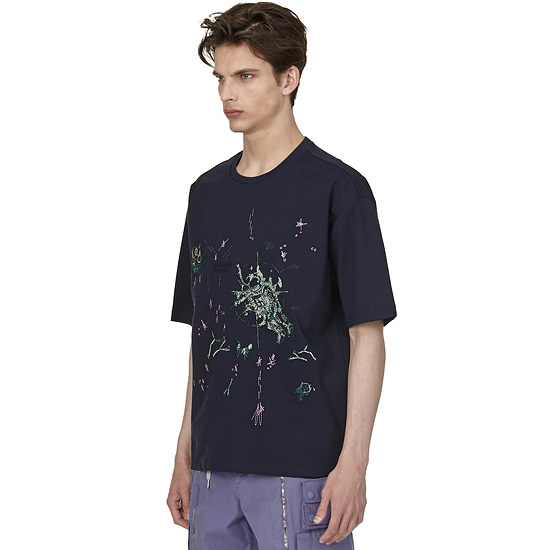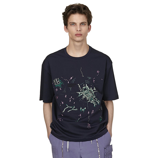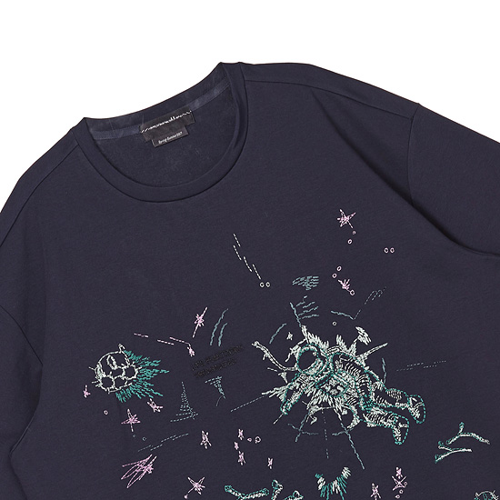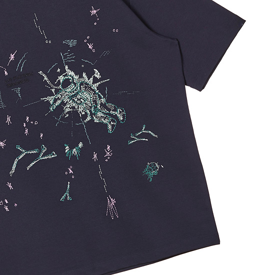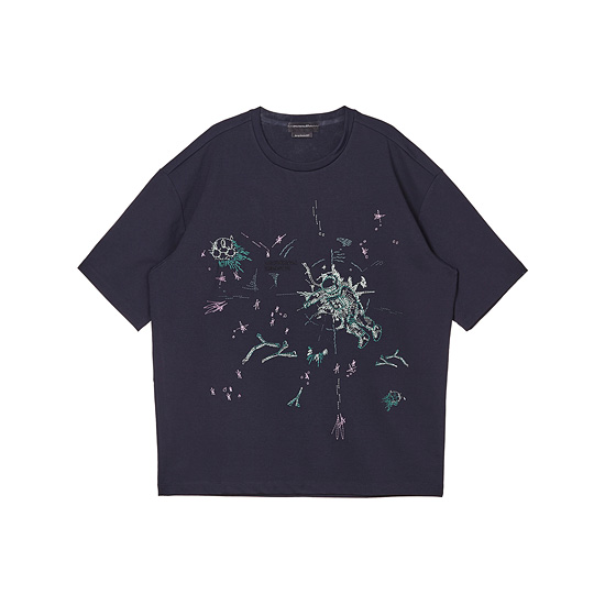 - 시즌 모티브인 우주 자수가 컬러감있게 적용된 반팔 티셔츠.