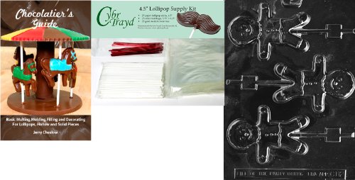 Cybrtrayd 45stK25RBk-C112 Gingerbread Man Lolly Chocolate Mold with Chocolatier's Bundle of 25 Lollipop Sticks, 25 Cello Bags, 25 Red Twist Ties and Chocolatier's Guide