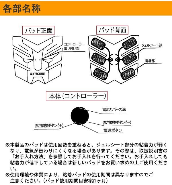 | 仕様 | 周波数:25Hz±10%低周波 強さ調整:15段階 使用電源:コイン型リチウム電池CR2032×1個使用 パッド使用期間目安:約1ヶ月(1日1回23分間使用する場合) |