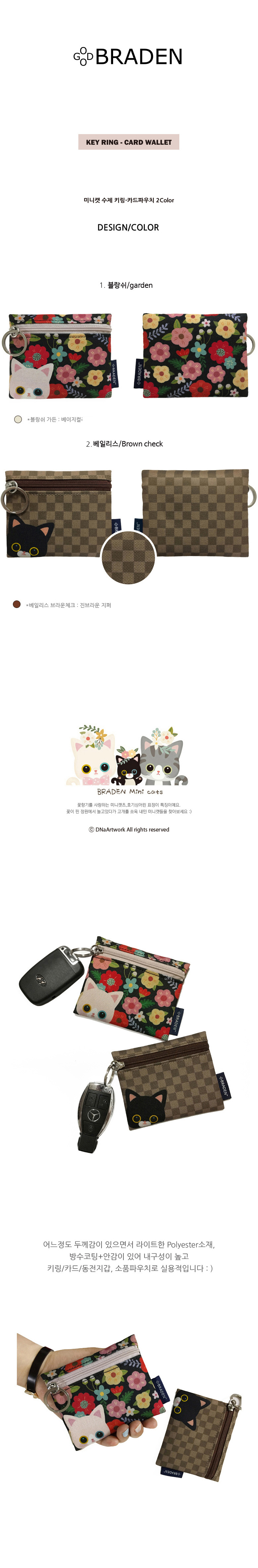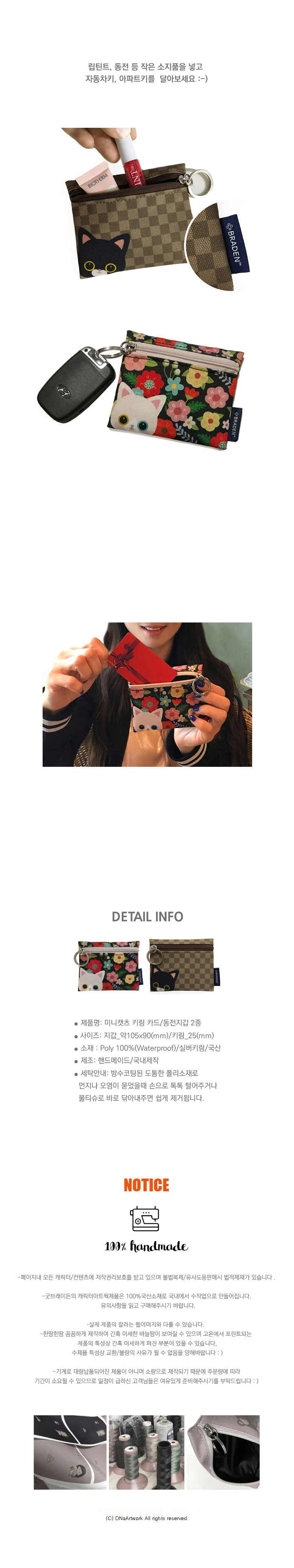 폴리에스테르원단 제작/안감이 있는 수제 키링-카드지갑입니다 :-)
