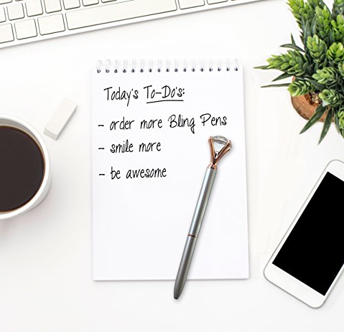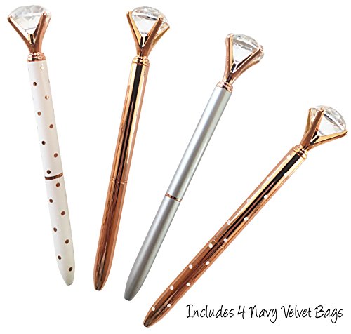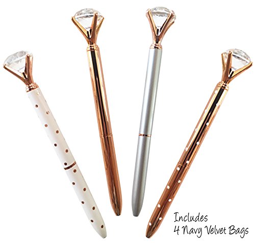 -. Title : Rose Gold, White and Silver Bling Pens with Large Diamond | Includes 4 Navy Blue Velvet Bags | Perfect Gifts for Women, Coworkers and Friends | Modern Rose Gold Office Supplies and Desk Accessories