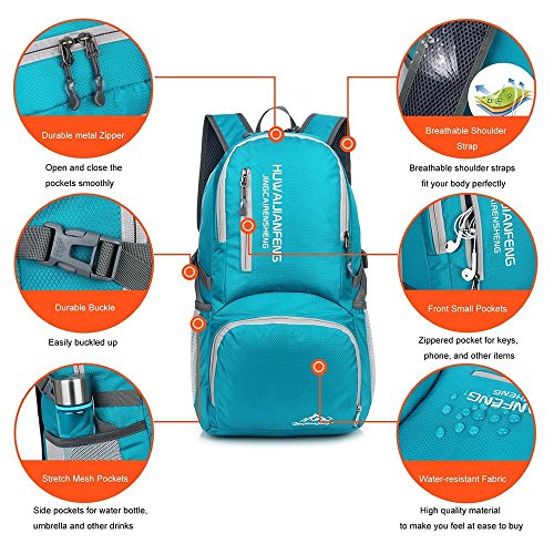 -. Feature : Adopt technology fabrics, soft and comfortable: with good anti-splashing, wind, breathable performance. / Light, slim, fast perspiration, quick-drying, to meet the daily travel of the day. / Lightweight carrying design, reduce the burden on the back, breathable heat dissipation performance, standard alignment, convergence at the double build, solid tear. / Foldable design: it can be folded and stored in a small zipper bag, easy to save space and carry. It can also be handed to carry. / Great Ideal for Hiking, Traveling, Camping, Riding Bike, Playing Basketball and Outdoors other holidays.